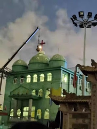 (Wenzhou City, Zhejiang Province—Feb. 02, 2021) At mid-night on February 1, approximately 100 Chinese security guards forcibly removed the cross of the 100-year-old Shuixin Church in Wenzhou City, Zhejiang Province. Believers attending this church reported their rejection of local government officials' request to remove the cross from their church's roof escalated to authorities forcibly removing it.